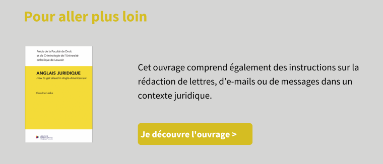 Le livre inclut également une section sur la rédaction juridique, car la forme et le langage des écrits juridiques en anglais – même dans les emails – sont très spécifiques. Cette partie permet au lecteur de naviguer dans ce champ de mines et de communiquer efficacement par écrit.